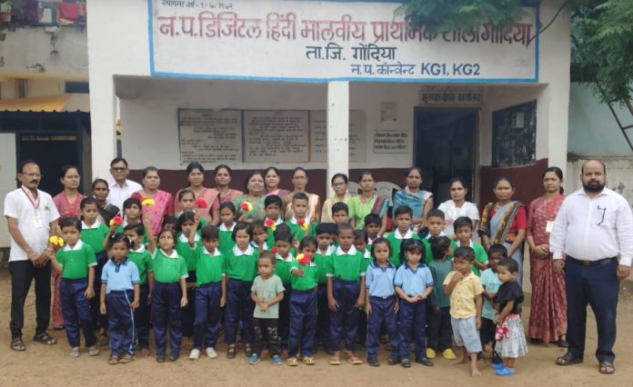गोंदिया : शहर के श्रीनगर में स्थित मालवीय स्कूल में विद्यार्थियों का धुमधाम से स्वागत किया गया। शाला में 22 नए बच्चों ने कक्षा पहली में दाखिला कराया है। इन नवप्रवेशित विद्यार्थियों के साथ ही अन्य विद्यार्थियों को तिलक लगाकर एवं मिठाई खिलाकर जोरदार स्वागत किया गया। कार्यक्रम की अध्यक्षता नगर परिषद के पूर्व शिक्षा सभापति निर्मला दिलीप मिश्रा ने की। इस अवसर पर स्कूल के पहले ही दिन विद्यार्थियों को किताबें, गणवेश भी वितरित किए गए। शाला प्रवेशोत्सव पर पूर्व शिक्षा सभापति मिश्रा ने विद्यार्थियों को बधाई देते हुए उनके उज्ज्वल भविष्य की कामना की और पढ़ लिखकर मालवीय स्कूल का नाम ऊंचा करने की उम्मीद बच्चों से जताई। इस अवसर पर मुख्य रूप से नगर परिषद में कार्यरत कमल मिश्रा, मुख्याध्यापक डी. टी. रहांगडाले, के.बी. रहांगडाले, शिक्षिका रीना कावड़े, गौरी बारेवार, आरती वाघाडे, अश्विनी सहारे, आचल साठवने, परिचर गोविंदा बैसरा, वैशाली वैद्य, पुष्पा तिड़के, वीणा राऊत, पालकगण सुनीता मस्करे, सविता उंदिरवाड़े, राजेश्वरी नेवारे, बबिता सुरनकर, अनिता भातपिहरे, आरती सुरनकर, मीरा शेंडे, ज्योति चोरनेले आदि उपस्थित थे।