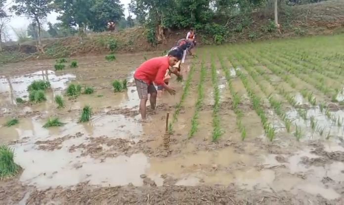 पारंपारिक लोकगीतांच्या तालावर भात लावणीला सुरुवात