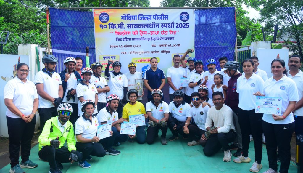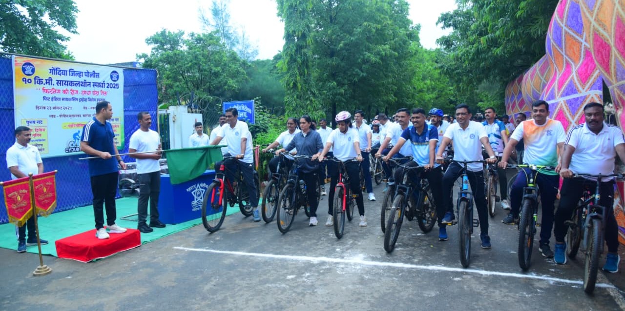 गोंदिया : गोंदिया जिल्हा पोलीस दलातर्फे फिट इंडिया मोहीम अंतर्गत श्री गोरख भामरे, पोलीस अधीक्षक गोंदिया यांचे मार्गदर्शनाखाली २३ ऑगस्ट २०२५ रोजी सकाळी ६ वाजता पोलिस मुख्यालय गोंदिया येथुन १०कि.मी. सायकल्थॉन स्पर्धेचे आयोजन करण्यात आले होते.