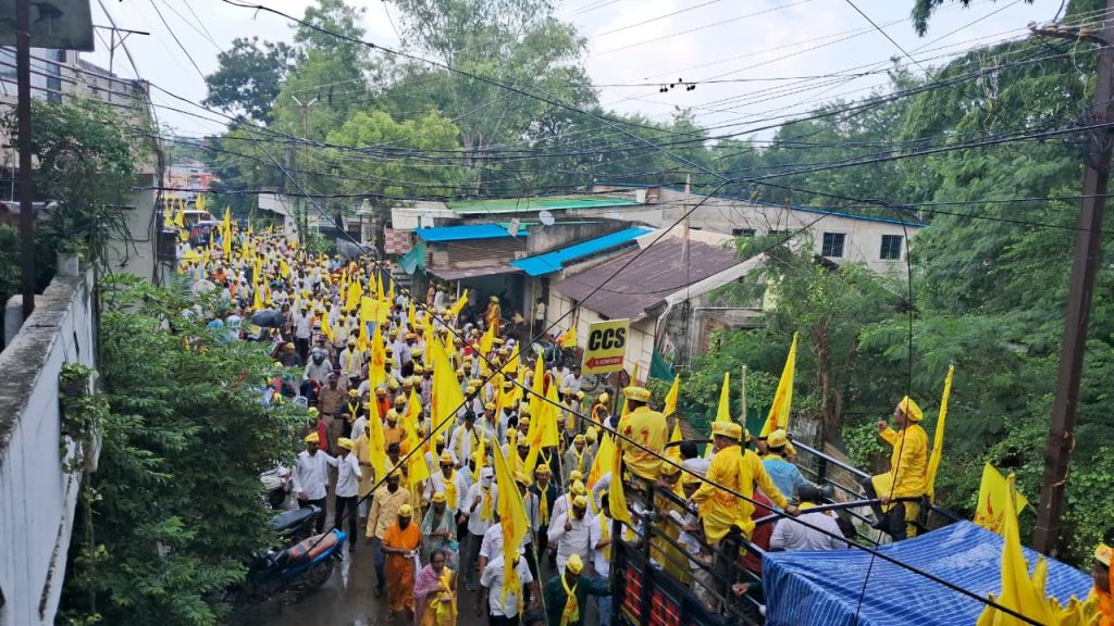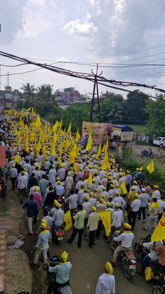 गोंदियात पहिल्यांदाच १० हजाराच्यावर ओबीसींचे पिवळे वादळ रस्त्यावर दिसून आले. विशेष म्हणजे, आज दुपारी आलेल्या पावसातही मोर्चेकरी उत्साही दिसून आल्या.